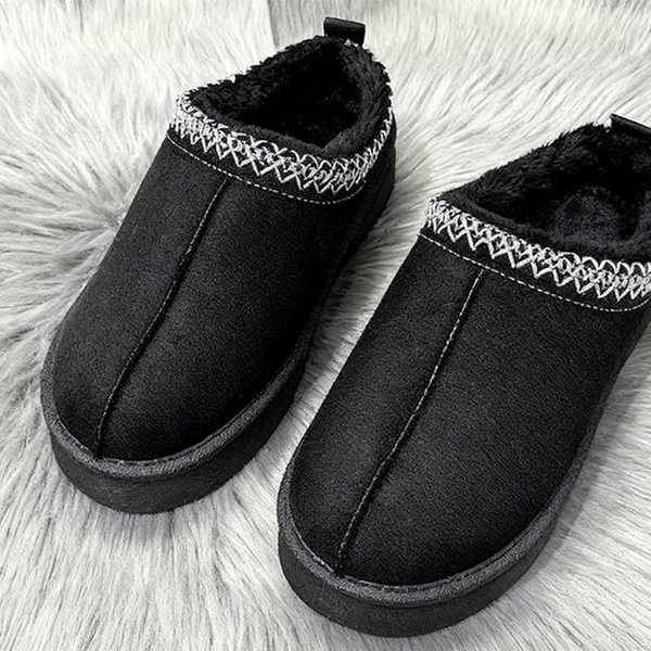 Diese warm gefütterten Slip-On-Hausschuhe bieten bequemen Halt, rutschfeste Sohlen und stilvollen Komfort für Zuhause und unterwegs