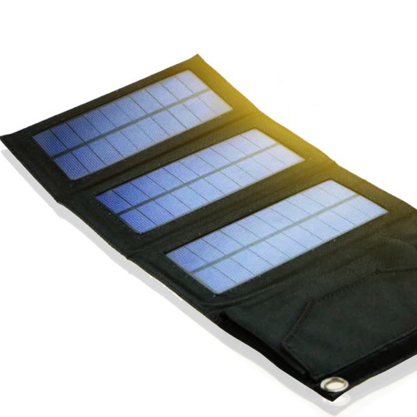 Das faltbare und wasserfeste Solarpanel mit 3 Solar-Flächen und USB-Slot lässt das Smartphone unterwegs aufladen