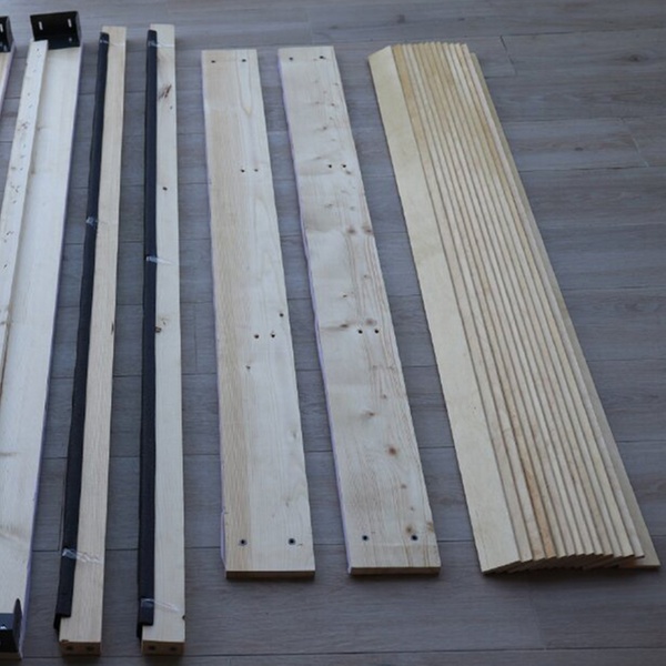 - Mit schwarzen Kunststoffkappen zum Einbetten der Lamellen in den Rahmen