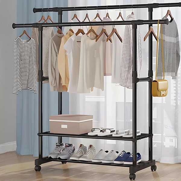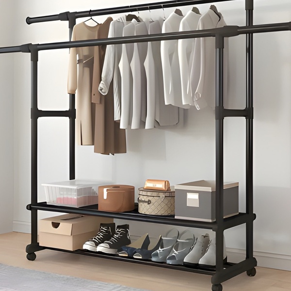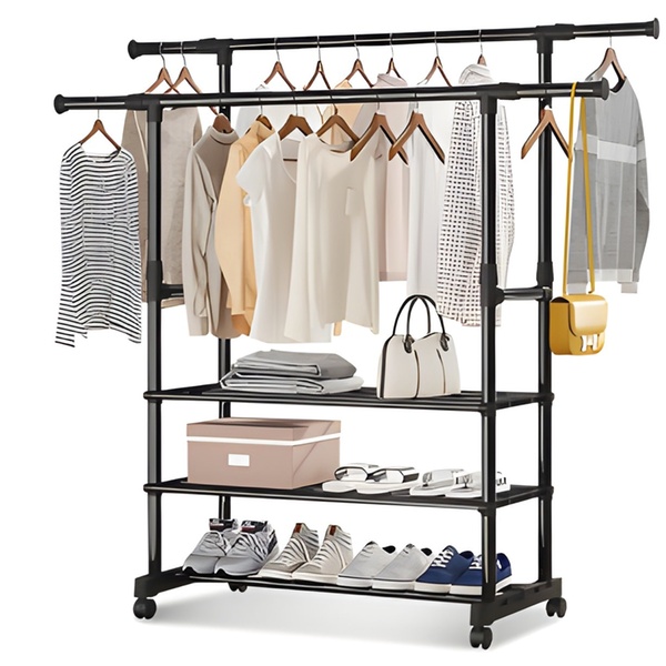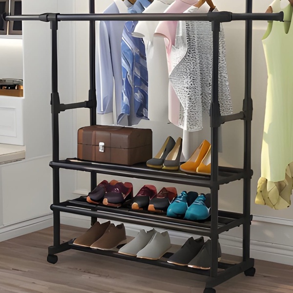 - Kleiderständer mit integrierten Ablageflächen für Schuhe und Accessoires
