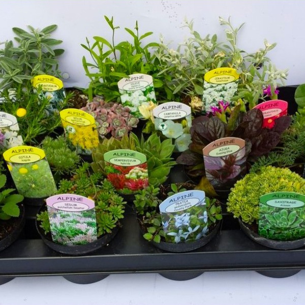 - Pflanzensorten: Aubretia Kitte Blue, Ajuga Braunhertz, Arabis Rose Delight, Arenaria Spring Snow, Armeria Purple, Armeria Red, Armeria White, Aubretia Dr Mules Variegated, Erysimum Canaries Yellow, Phlox subulata Kimono, Phlox subulata McDaniels, Cushion, Phlox subulata Purple Beauty, Polyanthus Cheshire Life, Saxifraga Lime Green, Saxifraga Mossy Rose, Saxifraga Mossy White, Sisyrinchium Sapphire Blue , Aubretia Red Shades, Cerastiun tormentosum, Dianthus deltiodes Flashing Light, Sedum pulchellum Sea Star, Sedum Reflexum