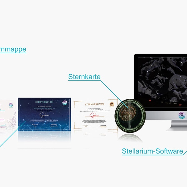 Sterntaufe mit Eintrag in das Sternregister, personalisierter Urkunde und Stellarium-Software