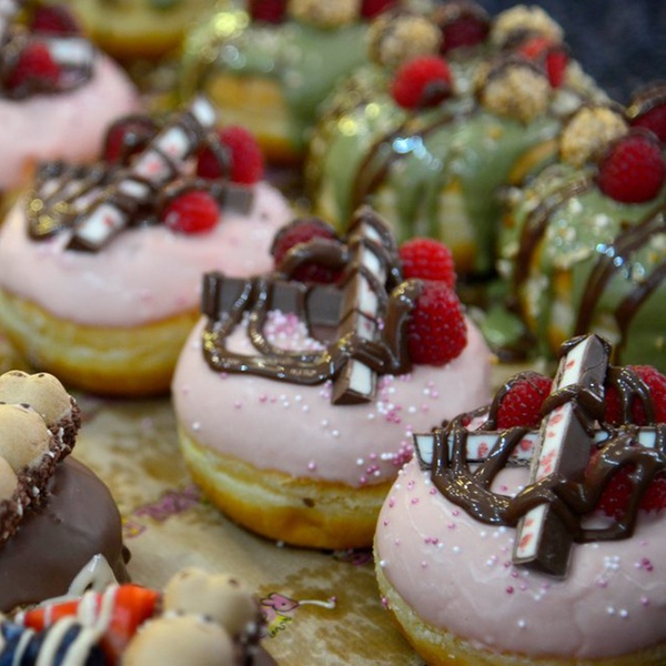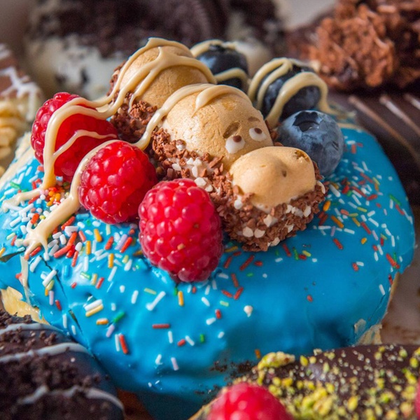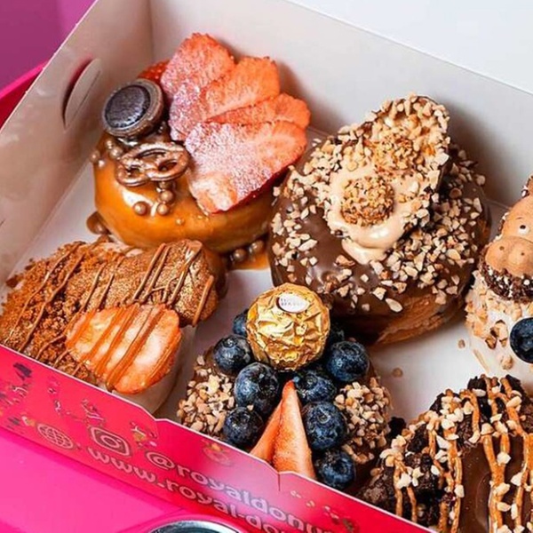 Frische und Geschmack sind das Geheimnis der Royal Donuts. Der Krapfenteig wird täglich frisch zubereitet und mit Saucen, cremigen Füllungen, phantasievollen Glasuren und Toppings zum königlichen Donut veredelt. Eins ist klar: Teigkringel von der Stange sind bei Royal Donuts nicht zu haben. Wer mag, kann sich seinen Wunsch-Donut ganz nach eigenem Gusto zusammenstellen. Zudem gibt es immer wieder neue saisonale Specials und ausgefallene Specials. Neben klassischen Donuts gibt es natürlich auch eine vegane Variante. Und wer es ganz üppig mag, bestellt sich einen Royal Bomb mit Schokofüllung und üppigen Toppings.