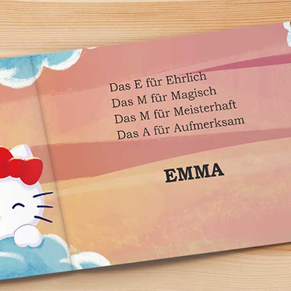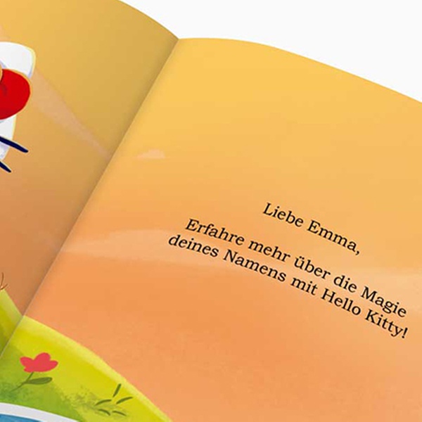 Liebevoll erzähltes Bilderbuch für Kinder bis 8 Jahren, das mit Hello Kitty und dem eigenen Namen eine ganz persönliche Note erhält