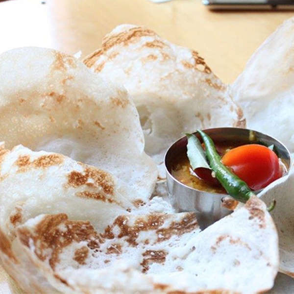 - 2. Gang: Appe (Hoppers) aus geröstetem Reismehl und Kokosmilch