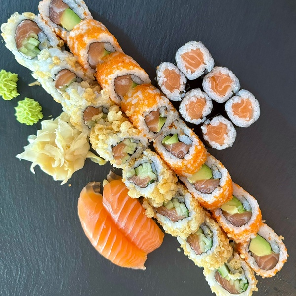 Frisches Sushi-Erlebnis: Wähle aus 9 kreativen Menüs, teile ein Lachs-XL-Set oder feiere mit 60 handgerollten Party-Stücken