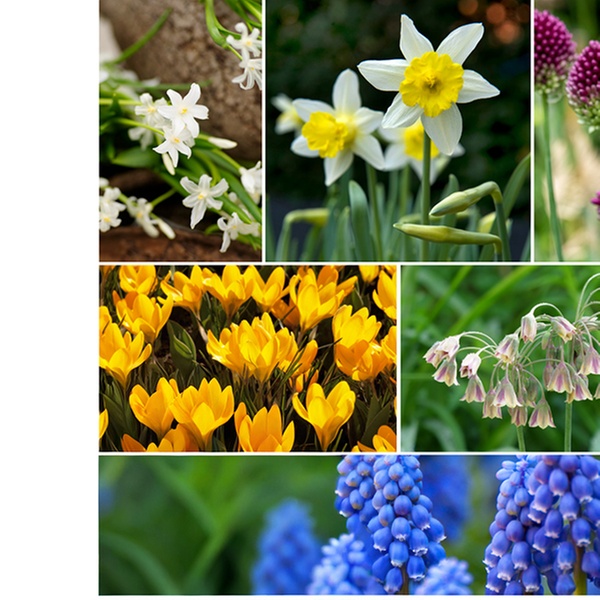 - Botanischer Name: Verschiedene Frühjahrsblüher (Narcissus Topolino, Crocus sp. Goldilocks, Allium Siculum, Chionodoxa Luciliae Alba, Allium Sphaerocephalon, Muscari Armeniacum)