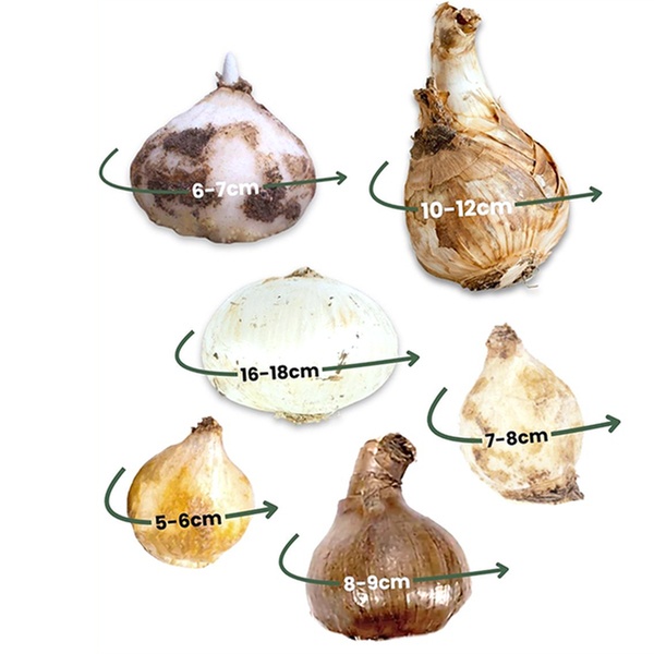- Umfang der Blumenzwiebeln: Unterschiedlich, je nach Sorte