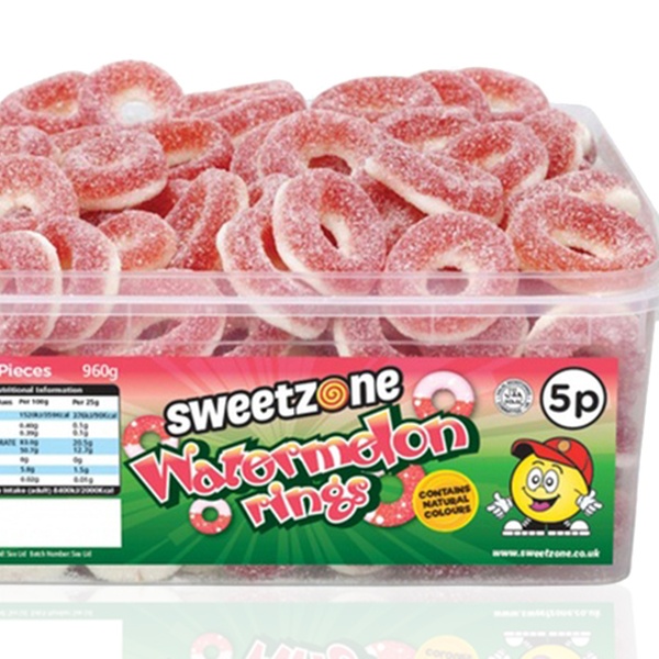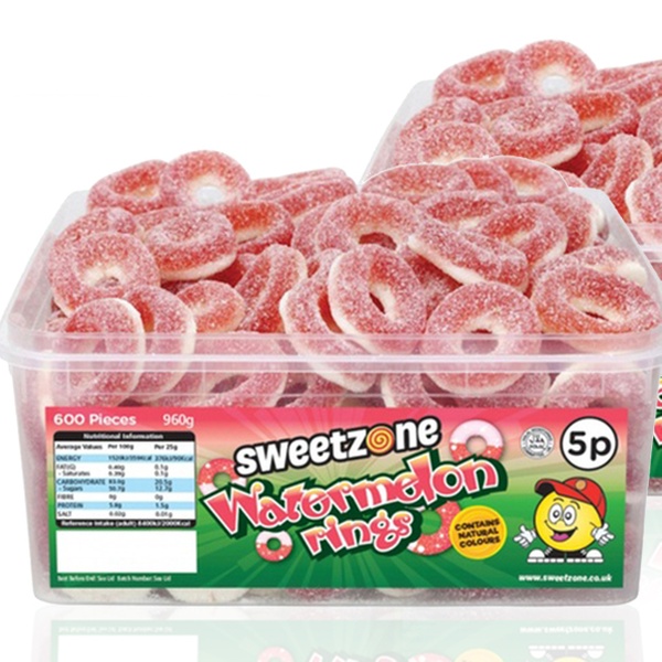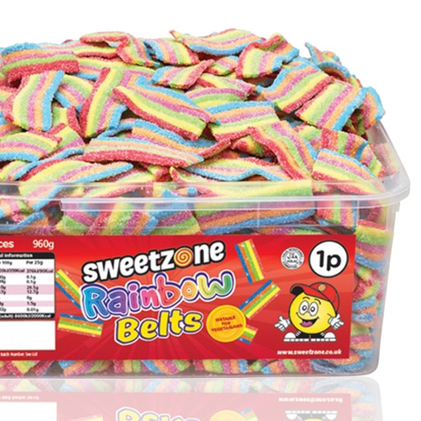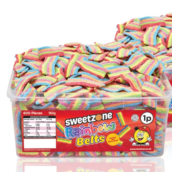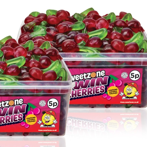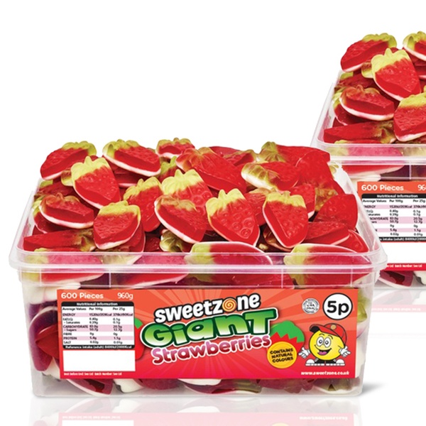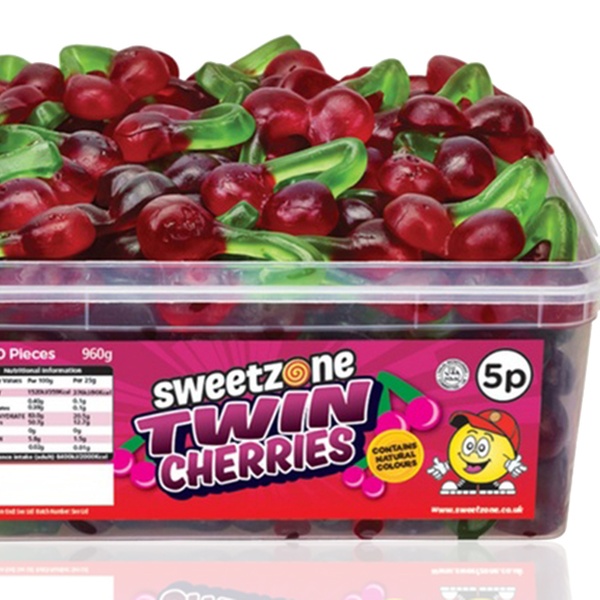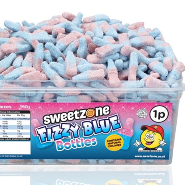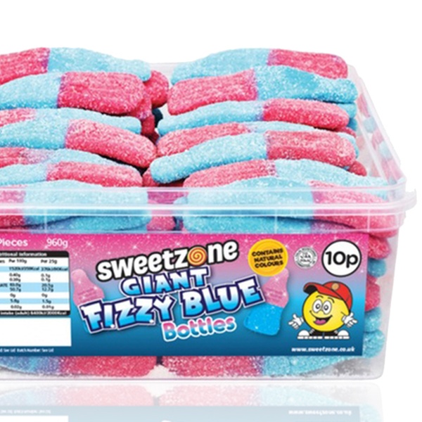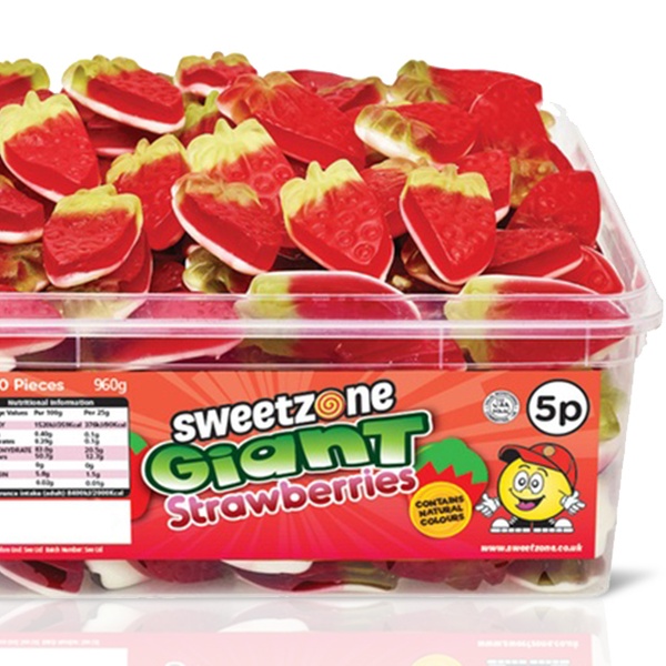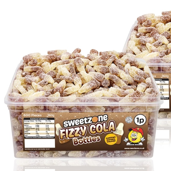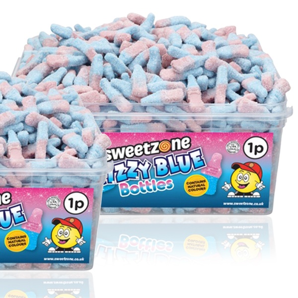 Eine Box mit der großen Menge von Gummibärchen verschiedener Sorten, wie zum Beispiel „Fizzy Cola Bottles“ oder „Juicy Lips“