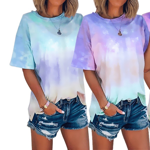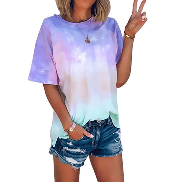 Luftiges T-Shirt mit trendigem Tie-Dye-Effekt für einen stilvollen Look an warmen Sommertagen
