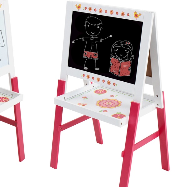 - Lieferumfang: 1x Kindertafel 2-in-1 in der ausgewählten Farbe (Bausatz zur Selbstmontage), 1x Tafelmarker, 2x Tafelschwamm, 12x farbige Kreidestücke, 1x Montageanleitung (DE/FR/EN/ES)