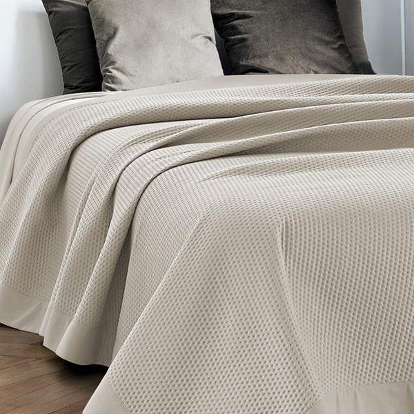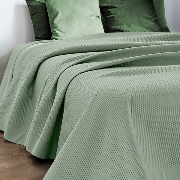 Diese elegante Tagesdecke eignet sich für die Frühjahrs- und Sommersaison und überzeugt dank "Pfirsichhaut-Behandlung" mit einer besonders weichen Oberfläche
