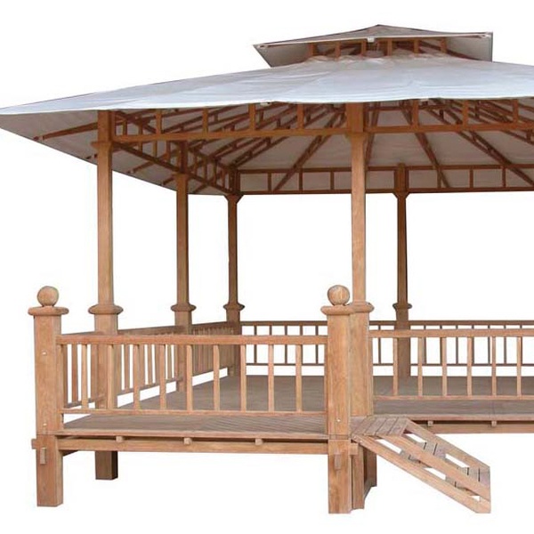 Quadratischer Luxus-Pavillon aus 100% FSC zertifiziertem Teak-Holz mit Treppenstufen