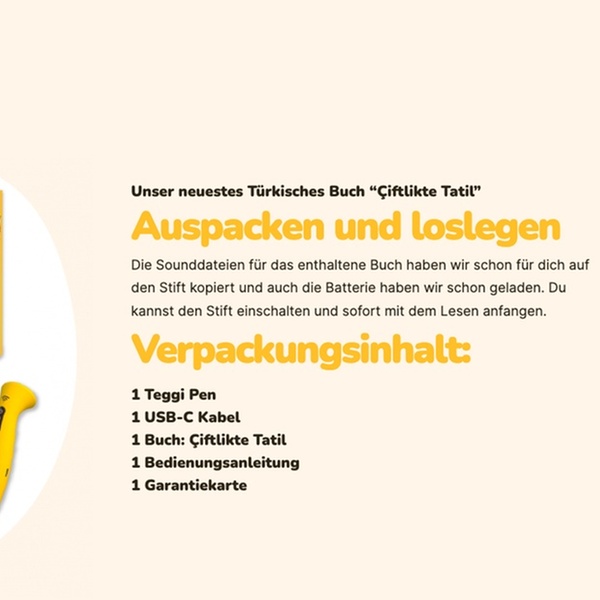 Dies ist unser neuestes Teggi Set mit türkischem Buch. Das Set enthält unser neues Buch “Çiftlikte Tatil” und den Teggi Stift.