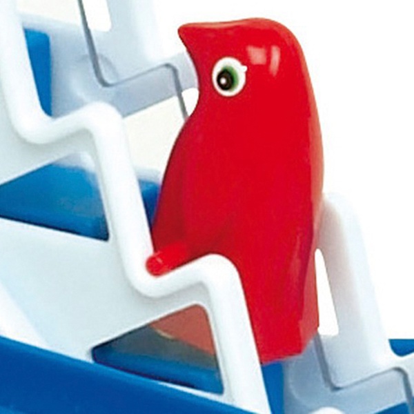 Spannendes Spiel, in dem 3 Pinguin-Figuren nach oben transportiert werden und danach schnell die spiralenförmige Bahn hinunterrutschen