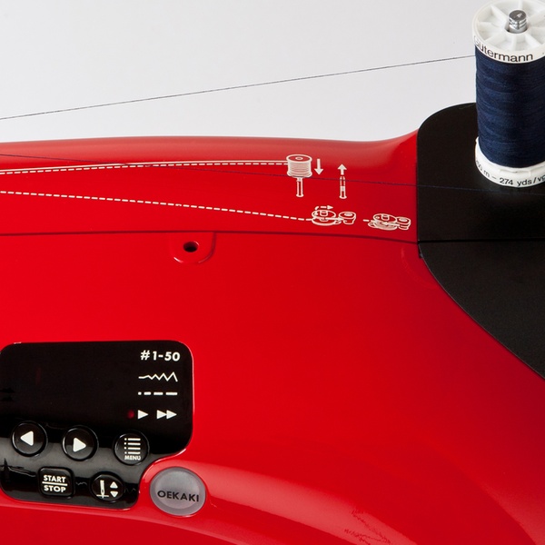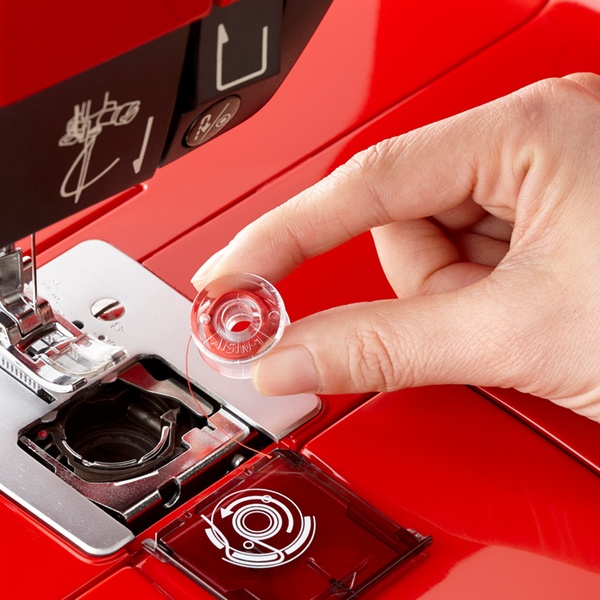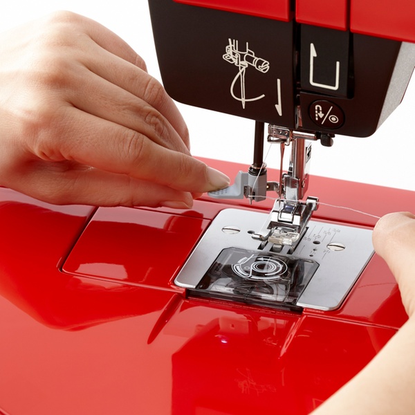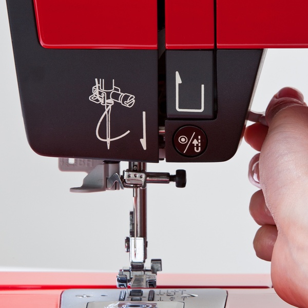 - Einfaches Einfädeln des Oberfadens dank der auf der Maschine abgebildeten Einfädelhilfe