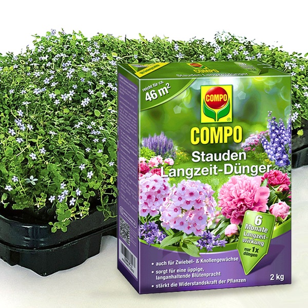 Winterharter und begehbarer Stauden-Teppich mit blauen Blüten, optional mit Compo® Langzeit-Dünger