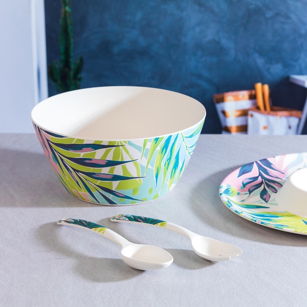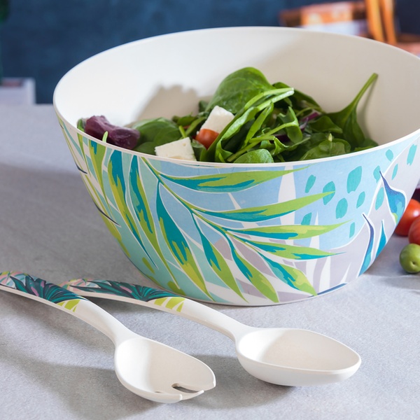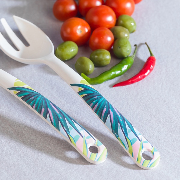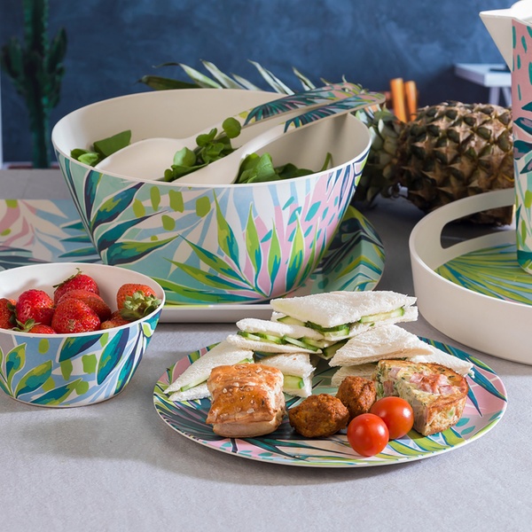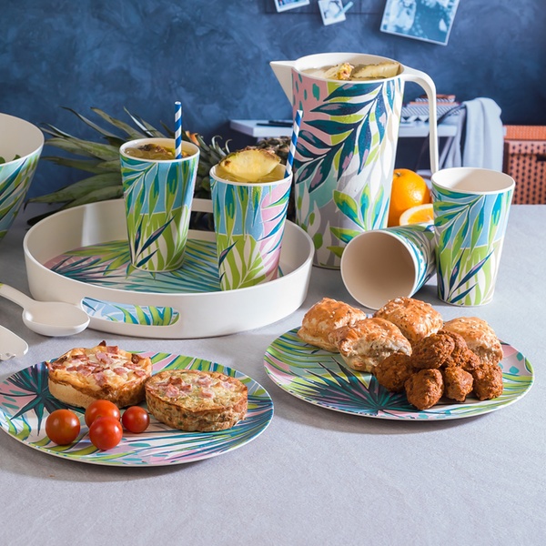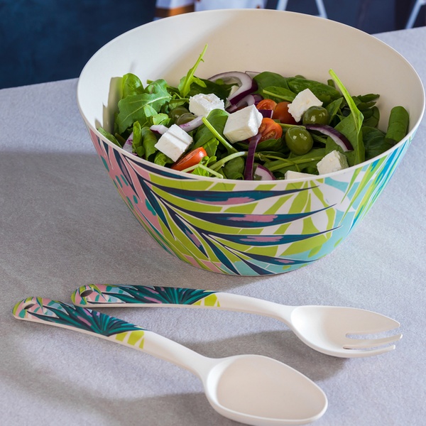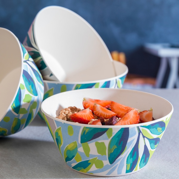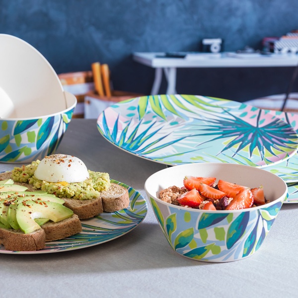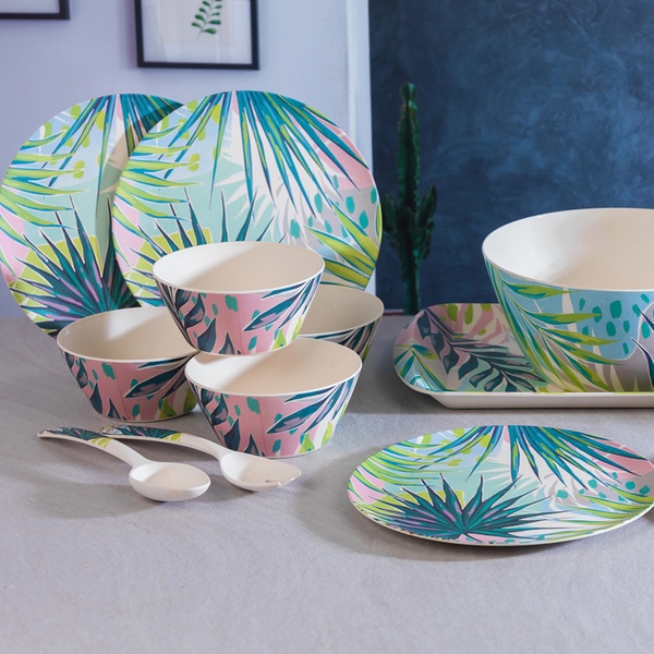 Umweltschonendes, wiederverwendbares und spülmaschinenfestes Geschirr-Set aus Baumbus mit Kayan-Aufdruck