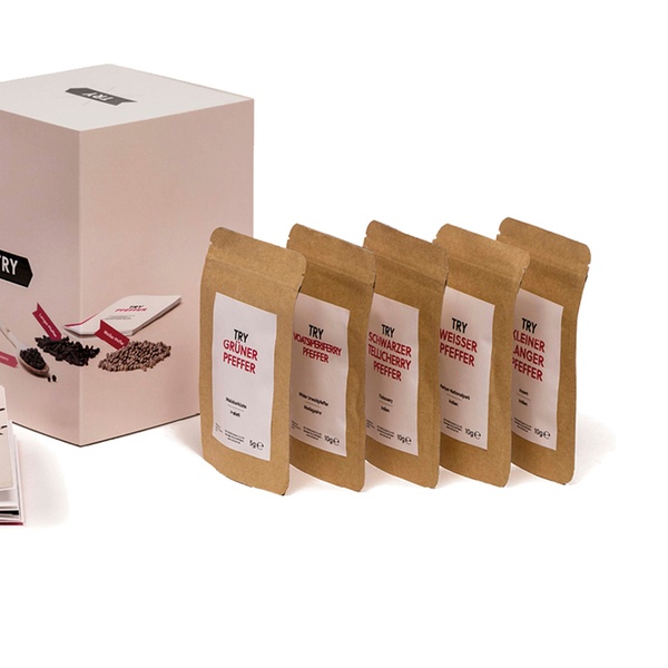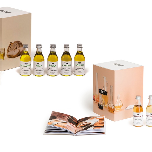 TRY FOODS Probierset: Essig, Olivenöl oder Pfeffer, vertrieben von TRY FOODS