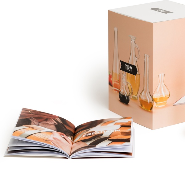 - 60-seitiges Booklet, eine Pipette und eine Kurzanleitung für die Verkostung zu Hause