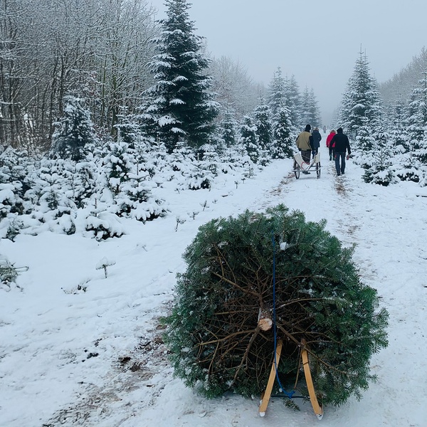 Erlebe die Freude, deinen Weihnachtsbaum selbst zu schlagen und genieße dabei die frische Luft und die festliche Stimmung auf der Plantage