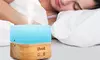 Ein kompakter Aroma-Zerstäuber in Mattglas- und Holz-Optik mit Nachtlicht-Funktion für ein duftendes Zuhause