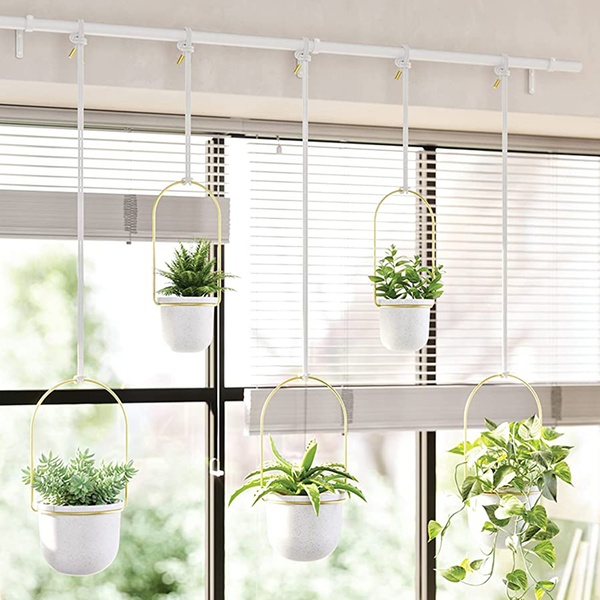 Eine dekorative Blumenampel mit verstellbaren Pflanztöpfen