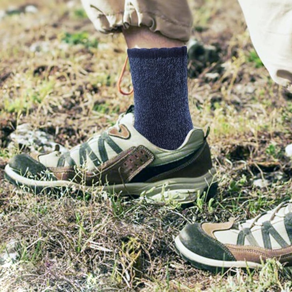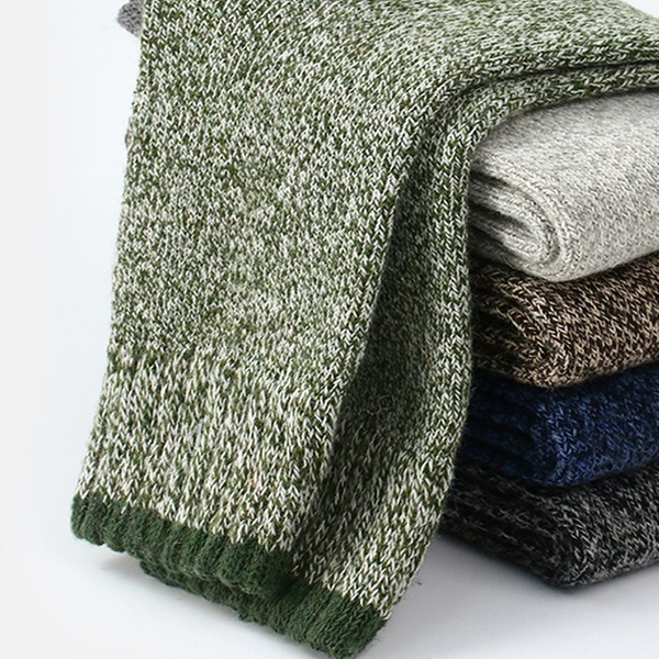 Ein Paar dicke, warme Wintersocken aus Wollmischung, die die Füße trocken und gemütlich halten – perfekt für kalte Tage zu Hause oder draußen