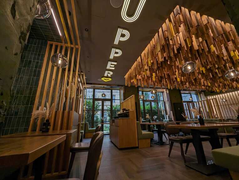 Auch das Ambiente im Upper Grill & Bar ist einzigartig: Direkt am Hackeschen Markt gelegen, lädt das stilvolle und durchdachte Design zu einem entspannten Abend ein. Die Location besticht durch eine Kombination aus eleganten Designermöbeln, Vintage-Details und moderner Lounge-Musik, die das Wohlbefinden der Gäste maximiert. Ob zum Business-Lunch oder einem Dinner in besonderer Atmosphäre – Upper Grill & Bar verspricht ein Erlebnis der Extraklasse, das einen Besuch unvergesslich macht.