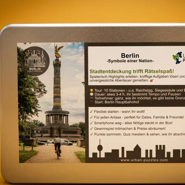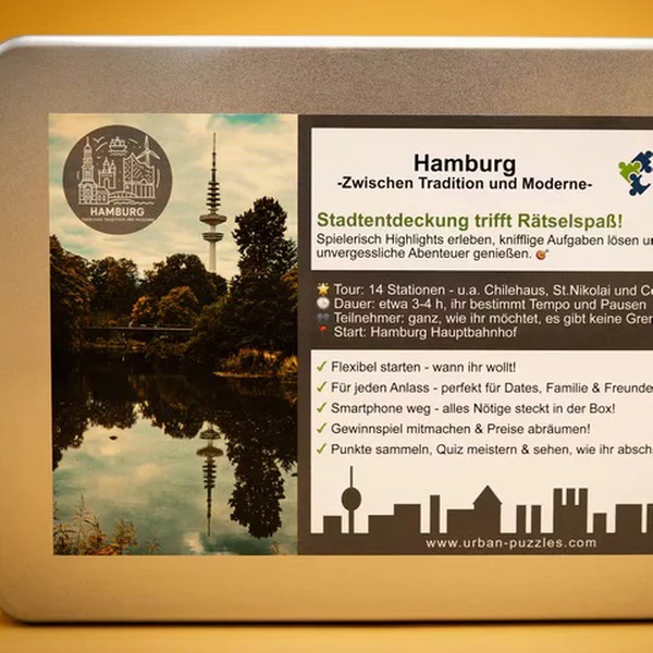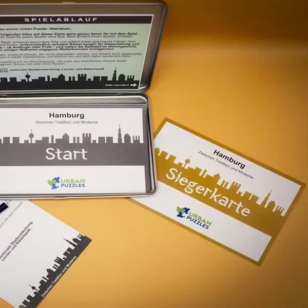 Erlebe deine Stadt neu und aufregend – spielerisch, rätselhaft und voller Entdeckungen! Ob mit Freunden, Familie oder beim Date, Urban-Puzzles bietet dir Spannung, Wissen und Spaß in jedem Schritt. Lerne versteckte Orte kennen, löse knifflige Aufgaben und genieße unvergessliche Momente ganz in deinem Tempo. Dein nächstes Abenteuer wartet direkt vor deiner Haustür! Die Tour startet wann immer ihr dafür bereit seid. Alles was ihr benötigt, steht auf den Spielkarten in der Box.