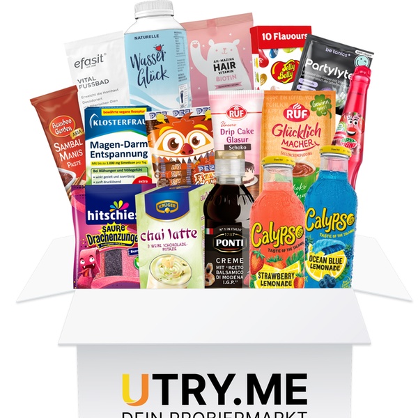 Die Utry.me Festtags-Box liefert dir 16 ausgewählte Produkte im Gesamtwert von über 40 € – ideal, um neue Highlights zu entdecken oder jemandem spontan eine Freude zu machen. In deiner Box können zum Beispiel Chai Latte Pulver von Krüger, süße Jelly Belly „10 Flavours“, die beliebte Calypso Lemonade oder sogar praktische Extras wie das efasit Vital Fußbad und Hair Vitamin Gummies stecken. Auch herzhafte Favoriten wie Sambal Manis Paste oder die Ponti Balsamico Creme können dabei sein und bringen sofort frische Vielfalt in deinen Alltag.