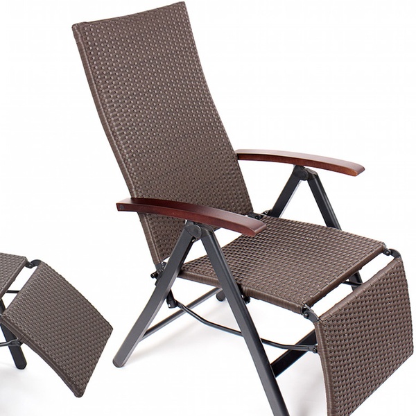 Mit Fußablage, siebenfach verstellbare Rückenlehne, einfach zusammenklappbar, Armlehnen aus geöltem Eukalyptusholz
