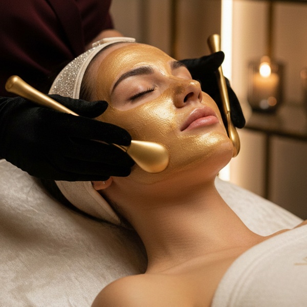 Luxus-Gesichtsbehandlung mit Goldpartikel-Maske