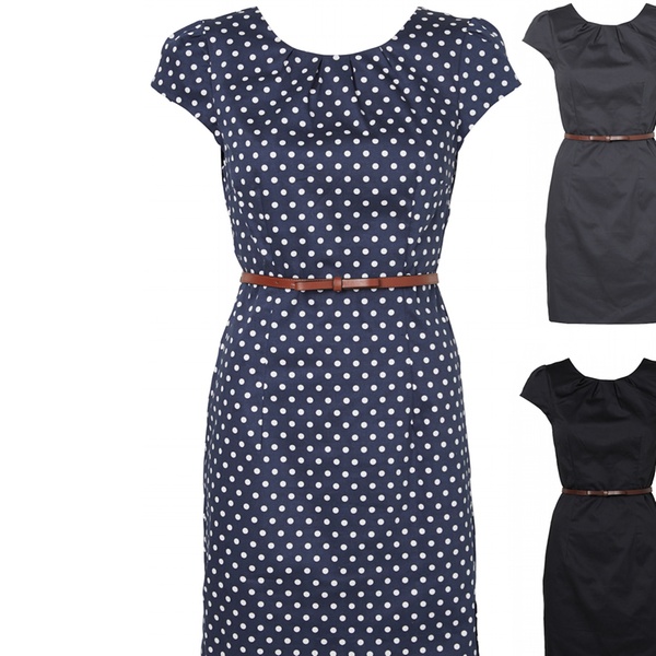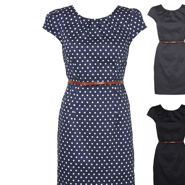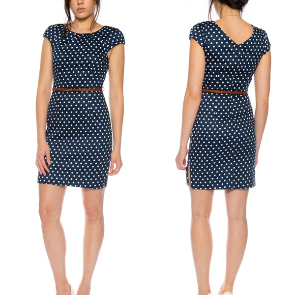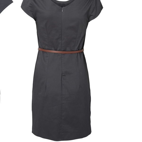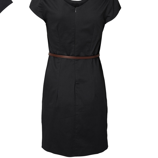 Ein kurzärmeliges Kleid im eleganten Look mit Reißverschluss am Rücken und integriertem Gürtel in der Taille