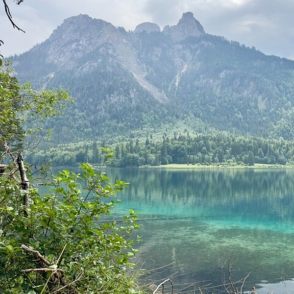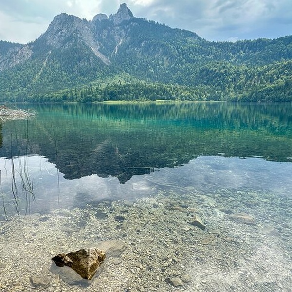 Wir wandern rund um den atemberaubenden Alpsee. Der Wanderweg bietet uns verschiedene Winkel auf Neuschwanstein und Burg Hohenschangau und sichert einen ruhigen und malerischen Weg zur Burg Neuschwanstein - abseits der Massen und abseits ausgetretener Pfade.