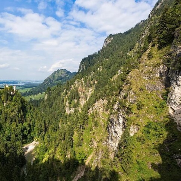 Während der Wanderung führt uns der Weg zu einem atemberaubenden Aussichtspunkt auf Schloss Hohenschwangau, einem weiteren Schloss, auf dem König Ludwig II. und seine Familie viel Zeit verbracht haben. Wir hören uns kurz um und erzählen Ihnen von der spannenden Vergangenheit dieses Schlosses.