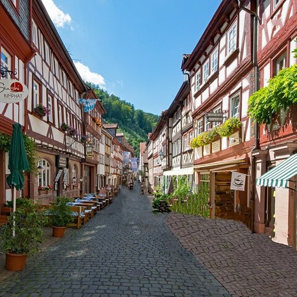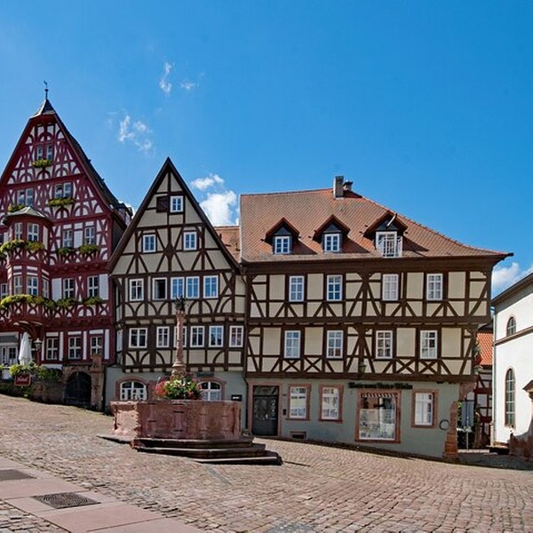Verlieren Sie sich im Märchenbuch der Altstadt Miltenberg, dem bezaubernden historischen Viertel, in dem die Zeit seit dem Mittelalter mit märchenhaften Fachwerkhäusern und prächtigen historischen Wahrzeichen wie dem Würzburger Tor der Alten Stadtmauer aus dem 13. Jahrhundert, das widerstandsfähige Mainbrückentor - das einzige erhaltene Zeugnis des mittelalterlichen Haupttors, das Neustadt und Altstadt verbindet, der beschauliche jüdische Friedhof aus dem 14. Jahrhundert, Gasthaus zum Riesen – das älteste Gasthaus Deutschlands, das viele berühmte historische Persönlichkeiten beherbergen soll, und nicht zuletzt der stimmungsvolle Alte Marktplatz, der das mittelalterliche Stadtbild und die lebendige Kultur der Stadt perfekt zusammenfasst.