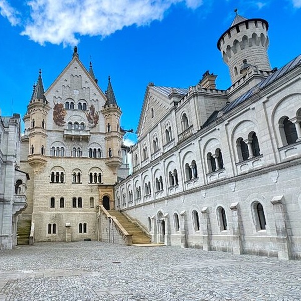 Sie besichtigen Schloss Neuschwanstein im Rahmen einer Tour, die auch als geführte Tour in allen Sprachen im Inneren des Schlosses angeboten wird, wenn gewünscht.