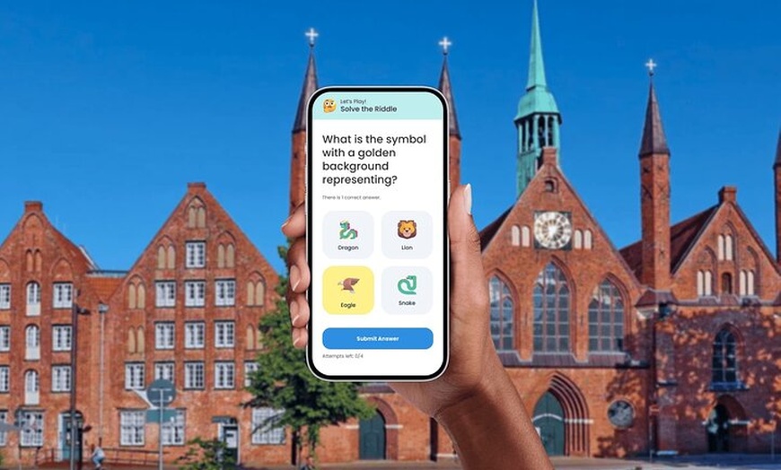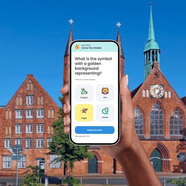 - Beginnen Sie Ihre Tour am Holstentor. Für ein optimales Erlebnis empfehlen wir, vom Holstentorplatz aus von Westen her zum Holstentor hin zu starten. Sie können die App überall in der Umgebung öffnen, um das Spiel zu starten.
