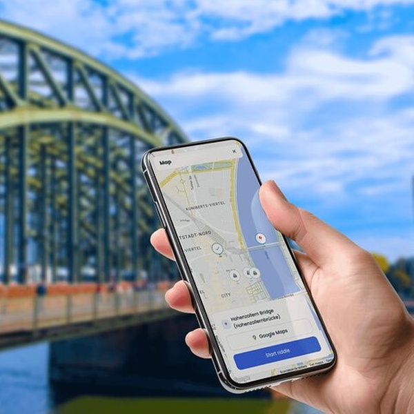 - Starten Sie die Tour am Kölner Dom. Sie können die App an einem beliebigen Ort in der Umgebung öffnen, um das Spiel zu starten.