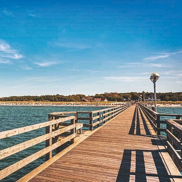- Direkt vor dem Seebrückenvorplatz befindet sich die Haltestelle der DARSSBAHN. Diese ist durch ein auffälliges Haltestellenschild gekennzeichnet. Dort beginnt die Tour.