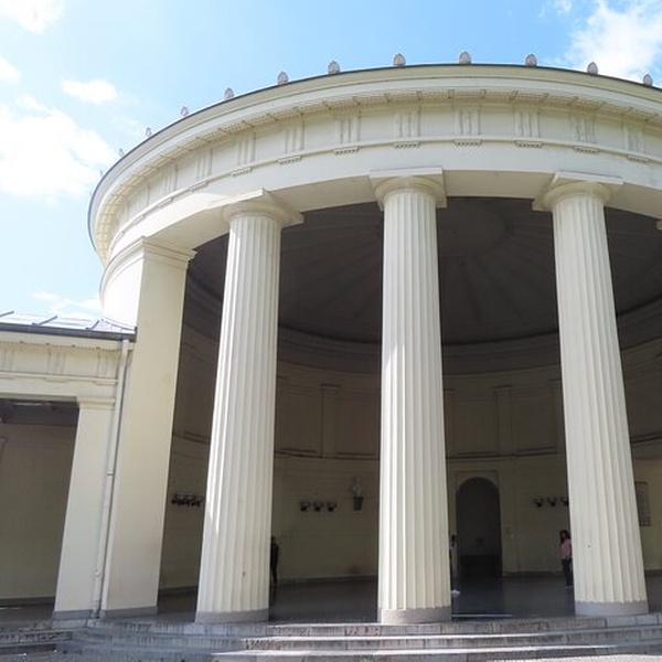Wir besuchen den Elisebrunnen, berühren das Thermalwasser und besuchen die archäologische Ruine im Elisegarten