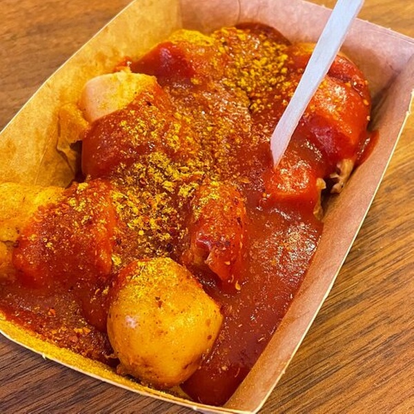 Wir beginnen unsere Tour auf einem der berühmtesten Plätze der Welt, dem Alexanderplatz, mit dem legendären Berliner Fernsehturm, dem Fernsehturm. Von hier aus unternehmen Sie mit unserem lokalen Experten einen Spaziergang durch den Bezirk Mitte und probieren einige der beliebtesten Gerichte Berlins, beginnend mit einem Grundnahrungsmittel der deutschen Küche: Currywurst!