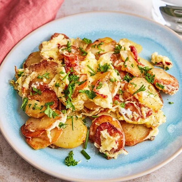 Wir beginnen unsere Reise mit einem warmen, wohltuenden Teller Bauernfrühstück – einem traditionellen deutschen Bauernfrühstück. Dieses herzhafte Gericht ist eine panierte Mischung aus Kartoffeln, Zwiebeln, Speck und Eiern, serviert knusprig und voller Geschmack. Es ist eine gemütliche, herzhafte Art, unser Abenteuer zu starten und einen echten Geschmack der lokalen Hausmannskost zu bekommen.