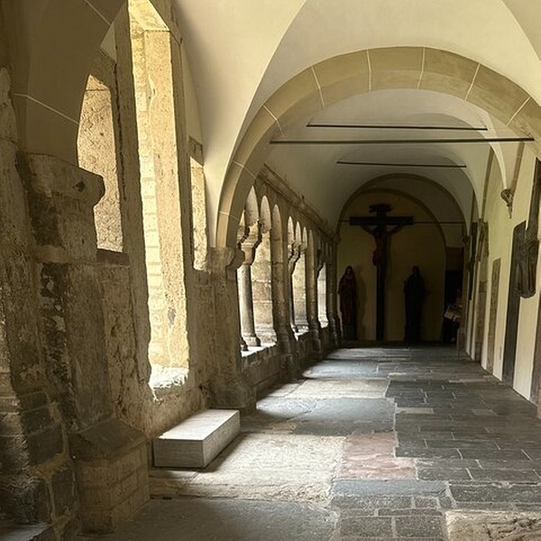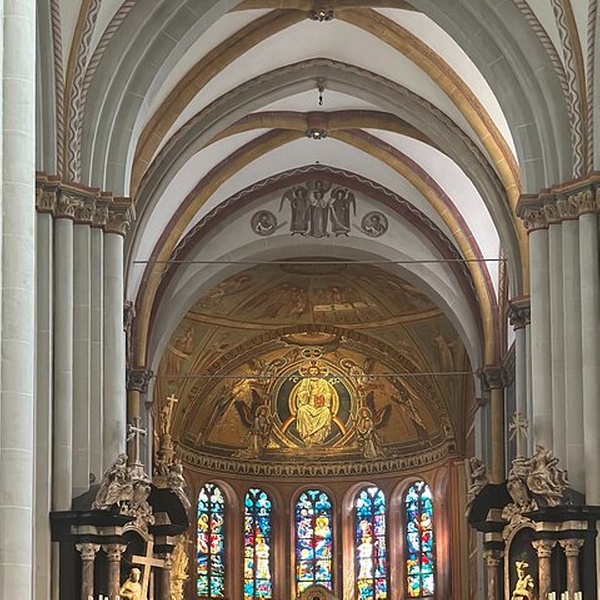 Entdecken Sie Bonns Wahrzeichen Bonner Münster, eine romanisch-gotische Basilika, die für ihre Zwillingstürme, ihren ruhigen Kreuzgang und ihre leuchtenden Glasmalereien berühmt ist. Treten Sie in die Krypta zu Ehren der Bonner Schutzheiligen Cassius und Florentius ein und begeben Sie sich auf den belebten Münsterplatz – nur wenige Schritte von Beethovens Statue und Cafés entfernt. Eine schöne, zentrale Haltestelle, die Geschichte, Architektur und ruhige Reflexion verbindet.