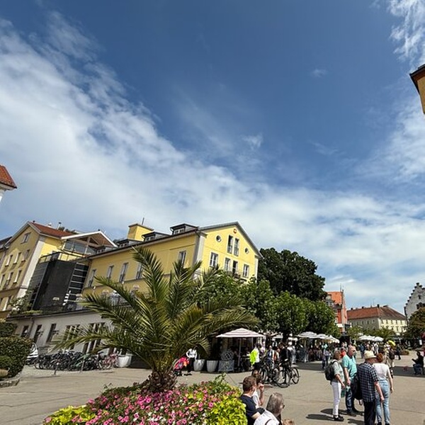 Der Bismarckplatz in Lindau ist ein belebter Platz in der Nähe von Altstadt und Hafen. Umgeben von Cafés und historischen Gebäuden ist es ein beliebter Treffpunkt für Einheimische und Besucher.