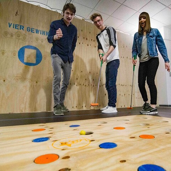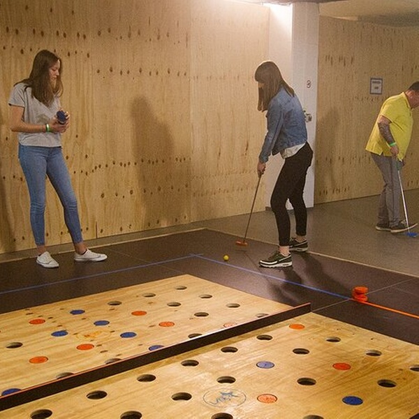 Durchgehendes Spiel auf den verschiedenen Bahnen. Euch erwartet einziger Abenteuer Minigolf Anbieter der Stadt. Beim Abenteuer Minigolf loggt Ihr Euch in unserer Online-Abenteuer -Minigolf-Spieloberfläche ein und erhaltet die Spieleanleitung direkt auf Euren Smartphone! Den Link dazu erhaltet Ihr von unserem Team kurz vor Spielbeginn. Außergewöhnliche Bahnen mit coolen Mechanismen. Betreuung durch erfahrene Mitarbeiter. Unglaublich viel Spaß für alle Teilnehmer. Spielausrüstung ist inklusive. Kein Anstrengendes Massenbriefing. Unsere Spieloberflächen und Spielerklärung sind auf Deutsch und in Englisch verfügbar. Mitzubringen ist Sportkleidung, bzw. Kleidung in der Ihr euch gut bewegen könnt. Sportliches und festes Schuhwerk (Turnschuhe empfohlen)