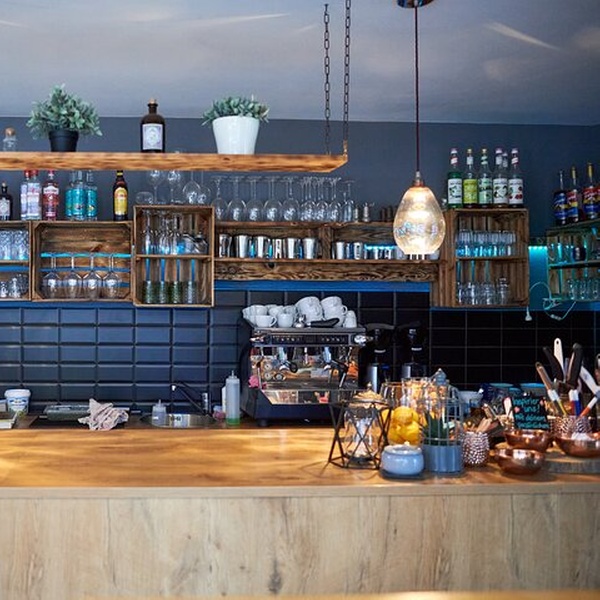 Original erhaltene Innenausstattung aus Holz. Heute ein kleines, nostalgisches Bistro.
