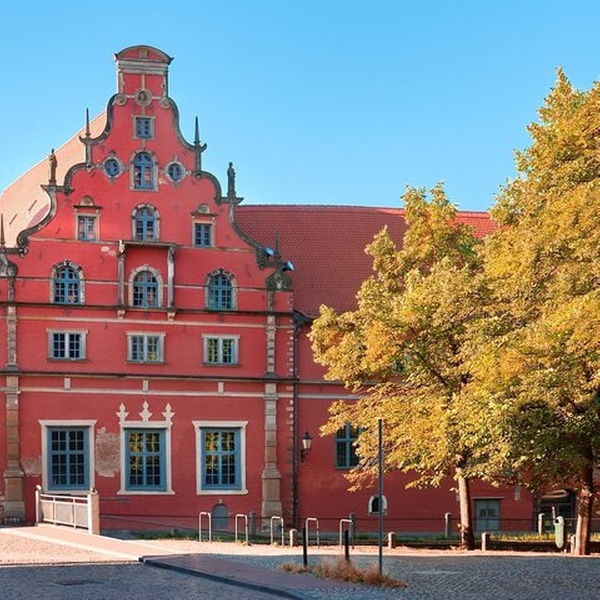 Beginnen Sie auf einem der größten mittelalterlichen Plätze Norddeutschlands, umgeben von Giebelhäusern und lokalem Leben.