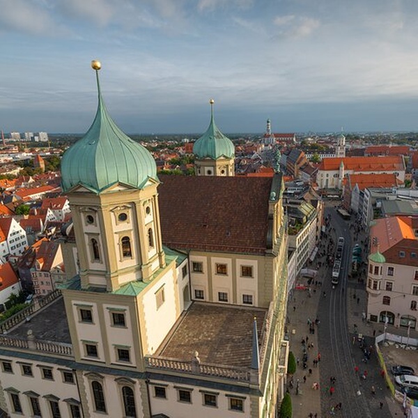 Erklimmen Sie diesen historischen Turm und genießen Sie einen atemberaubenden Panoramablick auf Augsburgs charmante Altstadt und darüber hinaus.